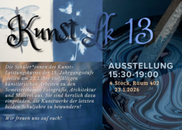 Die Schüler*innen des Kunst-Leistungskurses der 13. Jahrgangsstufe stellen 23.01. ihre vielfältigen künstlerischen Arbeiten zu den Semesterthemen Fotografie, Architektur und Malerei aus.