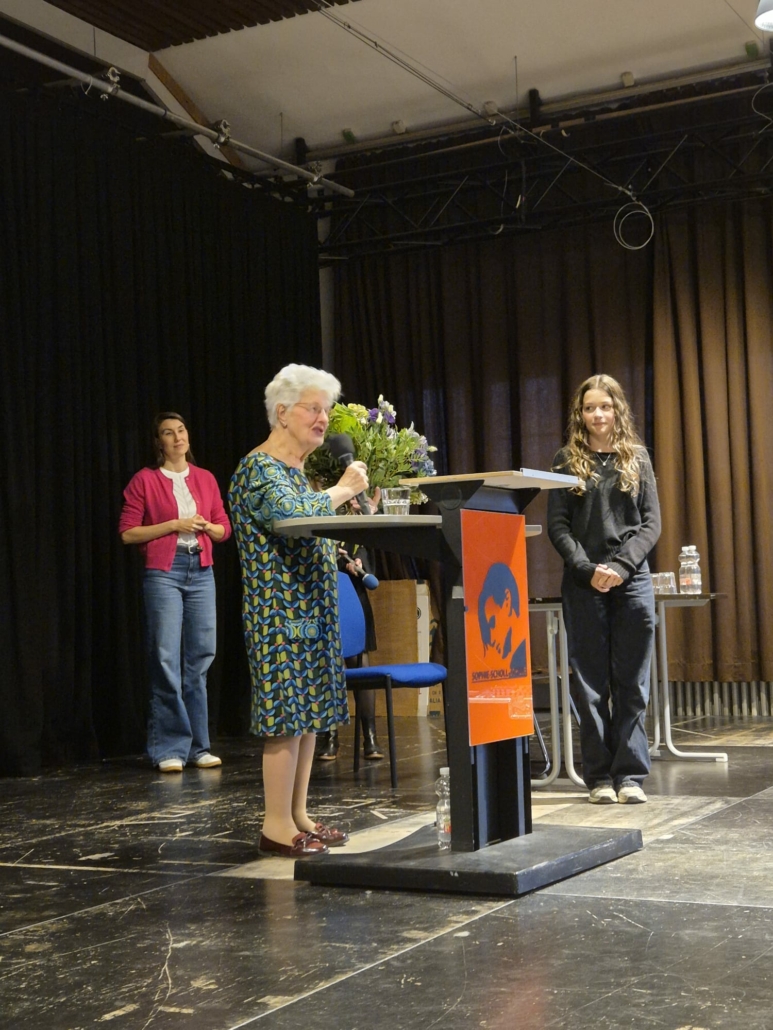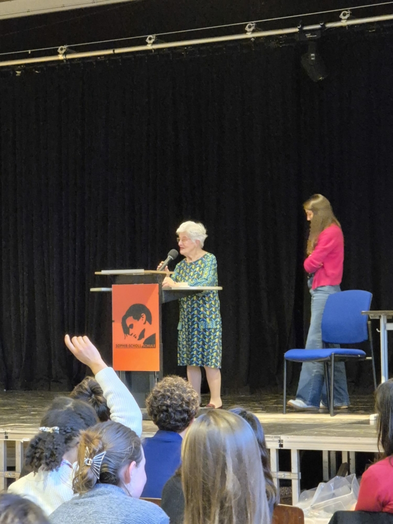 Rund 300 Schüler*innen der deutsch-französischen SESB der Sophie-Scholl-Schule und des Französischen Gymnasiums hörten ihr mit großer Aufmerksamkeit zu. Anschließend stellten sie zahlreiche kluge und einfühlsame Fragen, auf die Lili Leignel mit Präzision, Offenheit und unermüdlicher Begeisterung antwortete.