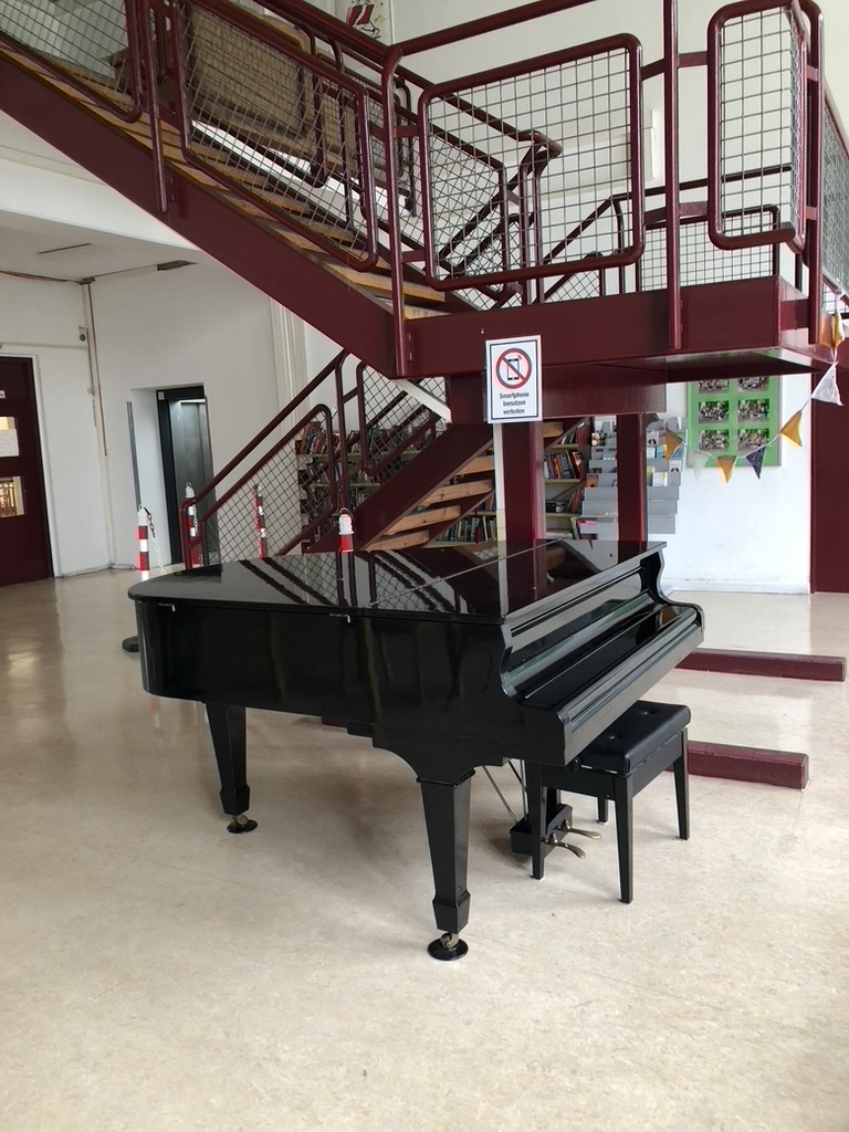 Darf ich mich vorstellen? Ich bin der neue Flügel, heiße Victor und stehe seit Kurzem im Lefèvre. Es gibt mich, weil etliche Musikensembles (Chöre, Bands und Orchester), die hier an der Schule proben, meine Tasten – und damit mich – gekauft haben! Und nicht nur die, sondern auch viele ehemalige und aktuelle Kolleg;innen, viele musikbegeisterte Eltern, der Landesmusikrat Berlin, der Fachbereich Musik, der Förderverein und etliche mehr sind nun stolze Besitzer meiner Tasten. Zum Beispiel gehören nun ein B-Dur-Akkord aus der Mitte und die „zwölfte Taste von unten“ – ein gis – und viele C, Fis und B-Tasten der Sophie-Scholl-Gemeinschaft.