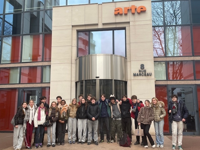 Am Nachmittag besuchten wir das ARTE-Studio. Dort wurden uns die verschiedenen Bereiche von ARTE vorgestellt, z. B. der Radiosender, Bildungsprogramme für Jugendliche oder Sendungen wie Karambolage. Wir haben gelernt, wie dort gearbeitet wird und wie Programme produziert werden. Am Ende konnten wir Fragen stellen, was uns bei der Arbeit an unserem Projekt über Marc Bloch sehr geholfen hat.