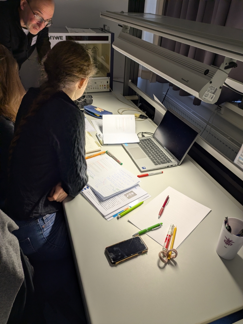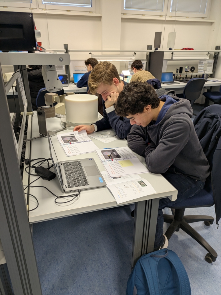 Die Schüler:innen experimentierten in Gruppen zu verschiedenen Themen der Quantenphysik und wurden dabei von einer ehemaligen Schülerin der Sophie Scholl Schule betreut. Am zweiten Tag bekamen Sie im Rahmen einer dreistündigen Führung über das DESY-Gelände Einblicke in die Hallen des Beschleunigers PETRA III und den großen Beschleuniger HERA. Die Schüler:innen waren sehr interessiert und haben Antworten auf viele Fragen bekommen.