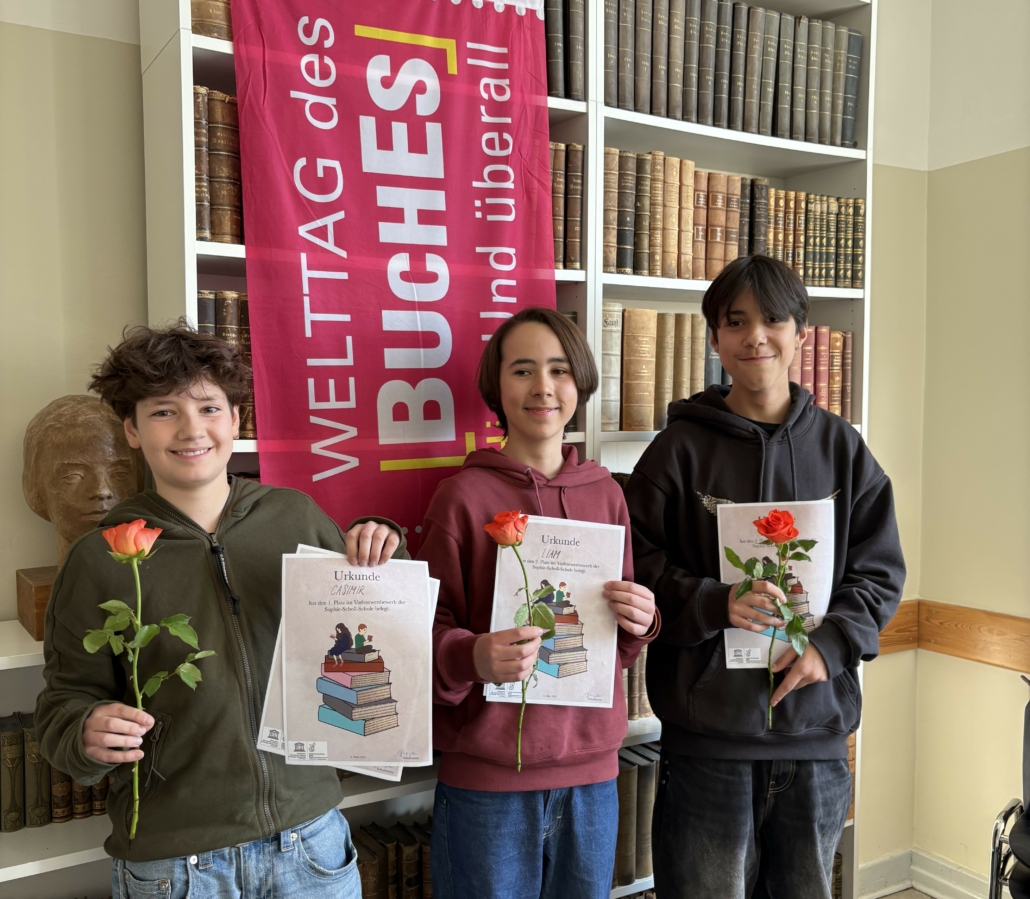 An der Sophie-Scholl-Schule fand am 6. März 2026 der Vorlesewettbewerb der Siebtklässler statt. Schülerinnen und Schüler aller 7. Klassen traten gegeneinander an und präsentierten ihre ausgewählten Bücher vor der Jury und dem Publikum. Alle Teilnehmenden haben sehr gut vorgelesen und gezeigt, wie viel Mühe sie sich bei der Vorbereitung gegeben haben. Die Jury hatte es daher nicht leicht, eine Entscheidung zu treffen. Die Platzierungen lagen teilweise sehr nah beieinander, manche unterschieden sich nur um einen Punkt.