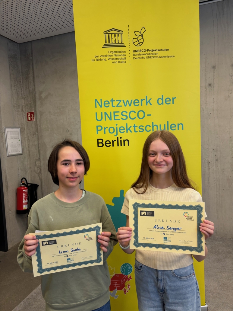 Am 19.3. haben Liam und Alice aus der 712 unsere Schule auch beim UNESCO-Lesewettbewerb erfolgreich vertreten: Liam hat den 3. Platz und Alice den 4. Platz belegt.